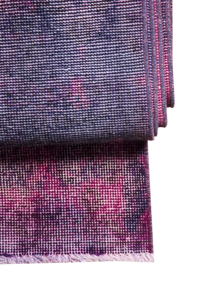 We lay them out under the sun to make the colors a bit more faded and also completely dry the rug. Then depending on how distressed the pile already is , we begin clipping, scrubbing and power washing the pile to make it lower and even.